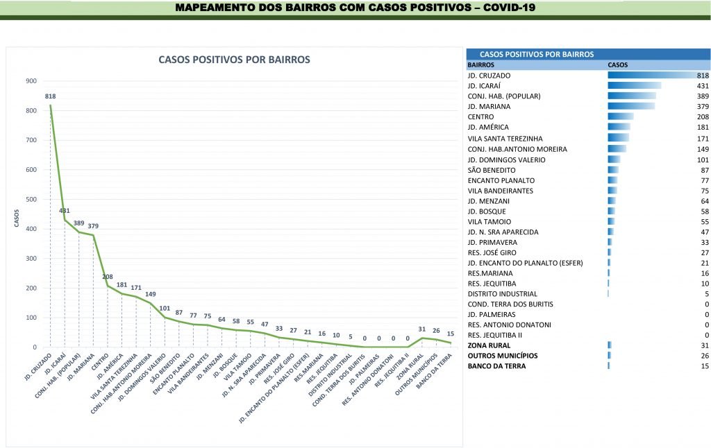 Entre os bairros, o Jardim Cruzado continua registrando o maior número