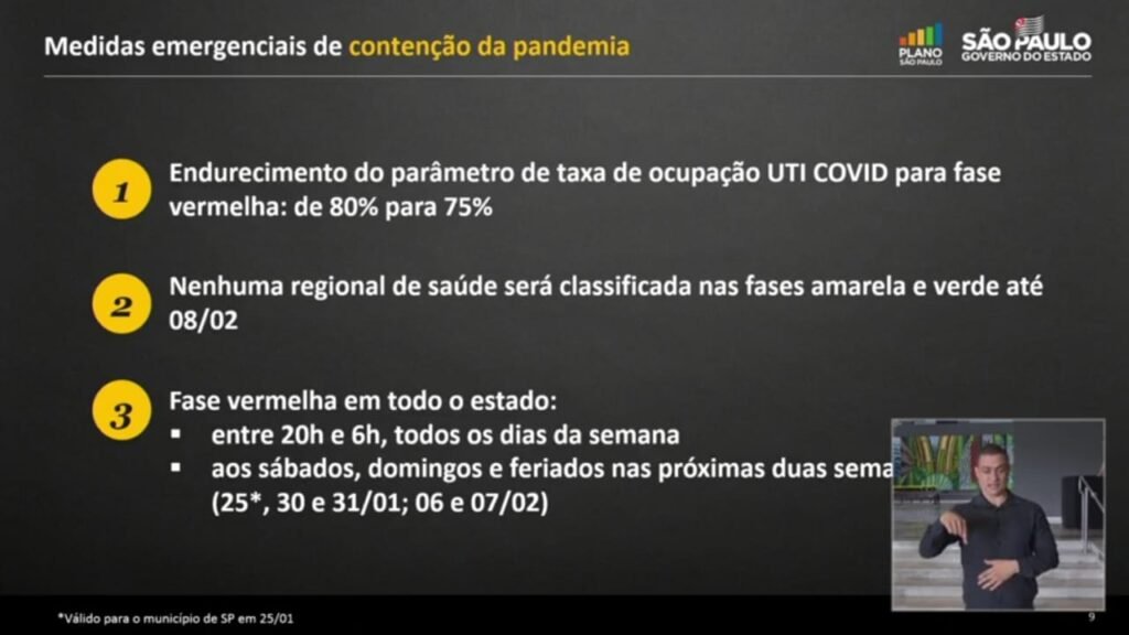 Nenhuma região poderá ser promovida para a fase amarela ou verdade até o dia 8 de fevereiro.
