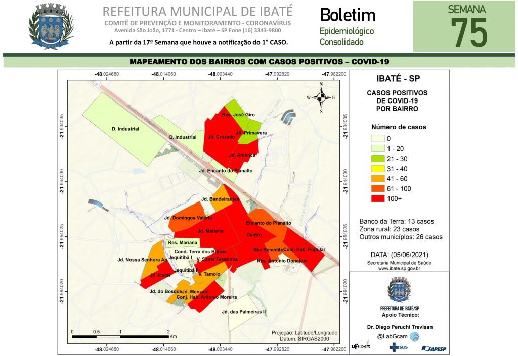 período de 30 de maio a 05 de junho, Ibaté registrou 70 casos