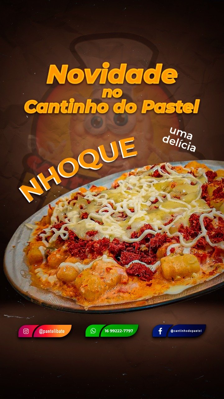 Tem novidade no cantinho mais saboroso da cidade, o Cantinho do Pastel agora conta com Nhoque, é uma delícia, experimente e se surpreenda.