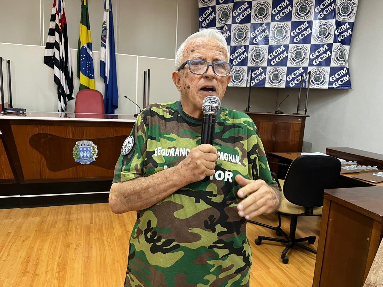 O instrutor Jayme abordou temas como relacionados ao comportamento, controle de acesso das pessoas, os diferentes tipos de padrões da vigilância e a postura que os profissionais dessa área devem ter, principalmente quando se atua nas repartições públicas.