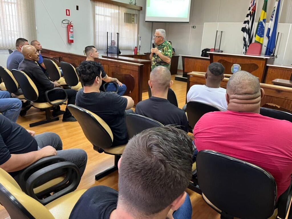 A palestra aconteceu no auditório a Guarda Municipal de Ibaté e foi ministrada pelo instrutor de segurança patrimonial e especialista em segurança Jayme Fernandes Fallaci .
