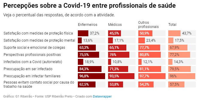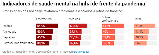 O estudo também conseguiu associar a incidência de sintomas de ansiedade, insônia e depressão a uma série de preocupações dos profissionais de saúde, entre elas: