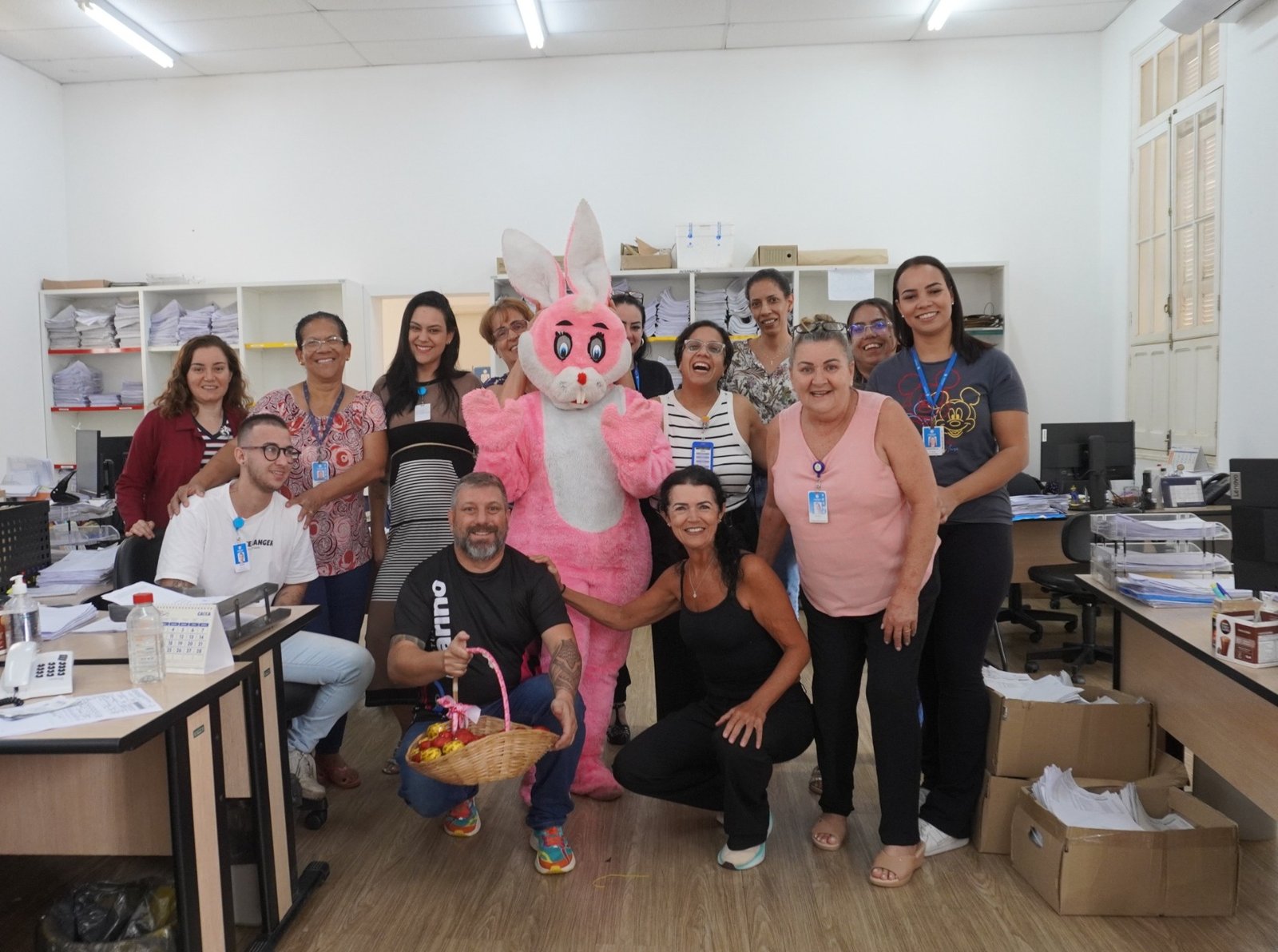 A ação contou ainda com a presença de uma personagem caracterizada como coelha da Páscoa, levando leveza e alegria aos pacientes, além de tornar o momento ainda mais acolhedor.