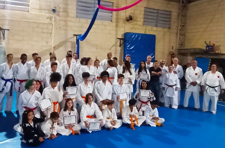 Na última quinta-feira (22), foi celebrada a entrega de faixa dos alunos do Projeto Educando com Karatê de Ibaté, com a participação dos 40 alunos que treinam na Academia Municipal e Pirâmide da Mata do Alemão.