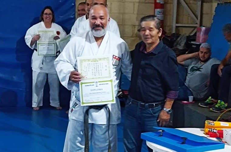 Após a entrega das faixas aos alunos, o Mestre Takeo outorgou o “6° Dan” de faixa preta ao professor Elcio Ferreira responsável pela modalidade no município.