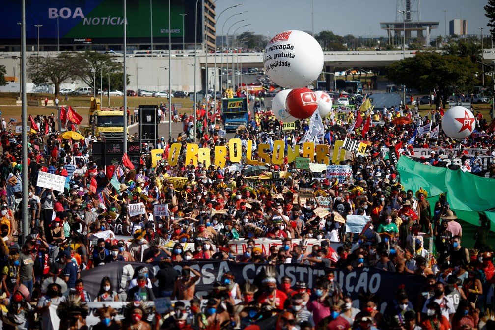 Distrito Federal – Manifestação contra o presidente Jair Bolsonaro, em Brasília, em 19 de junho — Foto: TV Globo/ReproduçãoDistrito Federal – Indígenas participam de protesto contra Bolsonaro, em Brasília, em 19 de junho de 2021 — Foto: G1 DFDistrito Federal – Grupo LGBT carrega faixa em protesto contra governo Bolsonaro em 19 de junho de 2021 — Foto: Anna Reis/ TV GloboDistrito Federal – Manifestantes carregam faixa pedindo vacina e auxílio emergencial em protesto contra presidente Bolsonaro, em Brasília, neste sábado (19) — Foto: G1 DFManifestantes fazem protestos contra Bolsonaro e a favor da vacinação em Brasília — Foto: Adriano Machado/ReutersManifestantes fazem protestos, em Brasília, contra Bolsonaro e a favor da vacinação — Foto: Adriano Machado/ReutersProtesto contra Bolsonaro reúne milhares no Centro do Rio — Foto: Reprodução/TV Globo Recife – Manifestantes seguem em caminhada pela Avenida Conde da Boa Vista, na região central do Recife, neste sábado (19) — Foto: Reprodução/TV GloboRecife – Manifestantes caminham em fila indiana e carregam seringas gigantes em alusão às vacinas em 19 de junho de 2021 — Foto: Pedro Alves/G1Recife – Manifestantes carregam seringas gigantes em alusão às vacinas em 19 de junho de 2021 — Foto: Elvys Lopes/TV GloboRecife – Manifestantes seguem em caminhada pela Avenida Conde da Boa Vista, na região central do Recife, neste sábado (19) — Foto: Reprodução/TV GloboManifestantes chegam ao cruzamento da Avenida Conde da Boa Vista com Rua da Aurora, durante protesto contra Bolsonaro, neste sábado (19) — Foto: Pedro Alves/G1 Imagem aérea mostra manifestantes na Rua da Aurora e na Ponte Princesa Isabel em abraço simbólico que marca fim do ato contra Bolsonaro no Recife — Foto: Reprodução/TV GloboSão Luís – Manifestantes fazem ato contra Bolsonaro e a favor da vacina em 19 de junho de 2021 — Foto: César Hipólito/TV MiranteMaceió – Manifestantes fazem caminhada em protesto contra o presidente Jair Bolsonaro na capital de Alagoas em 19 de junho de 2021 — Foto: Aldo Correia/TV Gazeta Campina Grande (PB) – Manifestação contra Bolsonaro e a favor da vacina em 19 de junho de 2021 — Foto: Amy Nascimento / TV ParaíbaManifestantes contra Bolsonaro fazem caminhada em via no centro de Palmas — Foto: Charles Barros/TV Anhanguera Manifestantes fazem ato contra o presidente Jair Bolsonaro na manhã de 19 de junho na cidade de Campinas, no interior de São Paulo — Foto: Wagner Souza/Futura Press/Estadão Conteúdo Protesto contra Bolsonaro em Campinas (SP) — Foto: Fabio Teodósio Costa