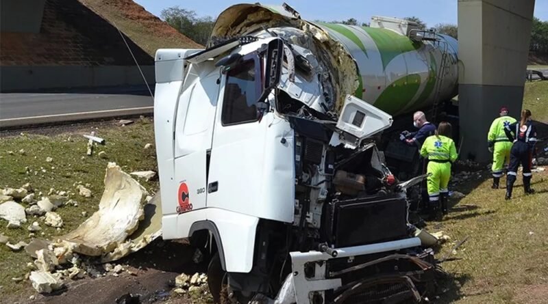 Um motorista morreu, na manhã de domingo (21), após bater o caminhão que dirigia na base de um viaduto, na rodovia Washington Luís (SP-310), em Matão (SP). As informações são do Matão Urgente.