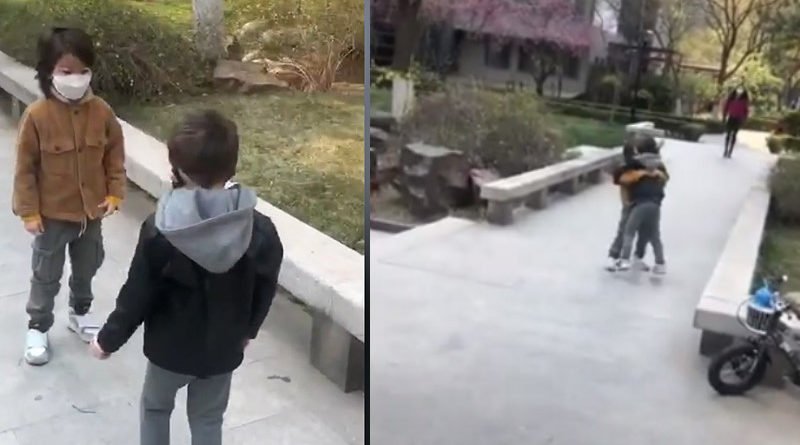 Uma cena de encher os olhos e o coração mostra dois garotinhos, melhores amigos, se reencontrando e dando um caloroso abraço após o bloqueio de dois meses, em Pequim, na China, por causa da pandemia de coronavírus.