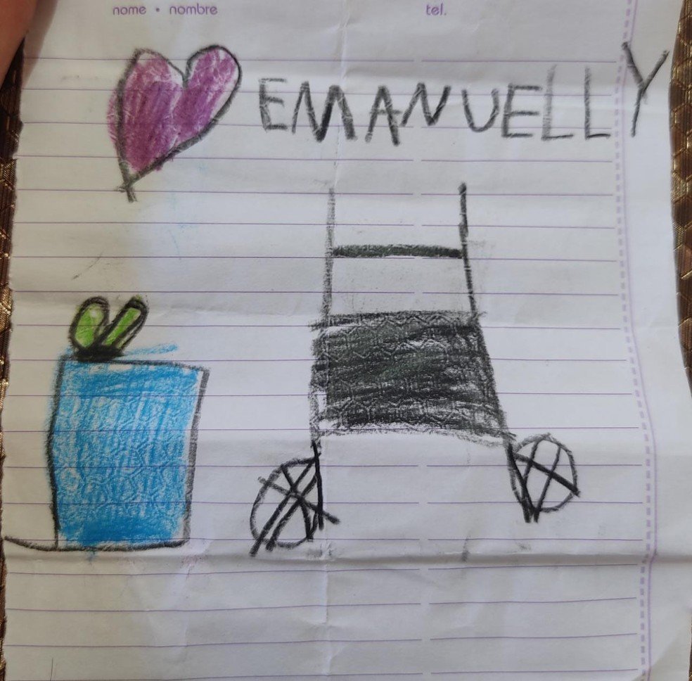 “A gente ficou surpreso, é muito bonito ver essa atitude dela. Partiu dela sozinha fazer o pedido para o Papai Noel da cadeira de rodas. A gente disse para a Manu que por ser muito pesada talvez ele [Papai Noel] não consiga trazer no dia 25, mas que a atitude é o principal e nos ensina muito”, comentou a mãe de Emanuelly, Letícia da Luz Vieira.