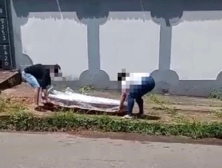 No vídeo, é possível notar que dois moradores aparecem segurando o caixão, de cor branca, para tirá-lo da rua e colocá-lo na calçada, após despencar do carro funerário. Na sequência, o motorista da funerária voltou ao local assim que percebeu que o caixão havia caído e o recolocou no veículo para concluir o percurso até o velório.