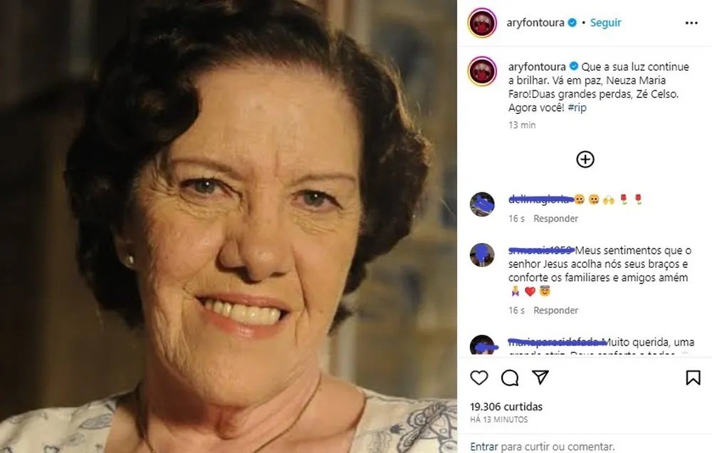 Ator Ary Fontoura faz homenagem a Neusa Maria Faro. — Foto: Reprodução/Instagram