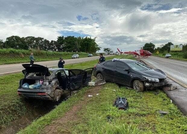 Um Fiat Cronos e um HB20 se envolveram em um engavetamento e os carros foram parar no canteiro central. O motorista do Cronos de 65 anos desceu com uma criança no colo e um jovem de 22 anos que mora na região foi até o local tentar ajudar os feridos.