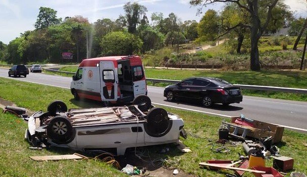 O motorista de 55 anos de uma picape, carregada com ferramentas, seguia sentido interior/capital e no km 225 (região dos motéis), por motivos ignorados, perdeu o controle e capotou por várias vezes. O veículo foi parar no canteiro central e as ferramentas espalhadas pela rodovia.