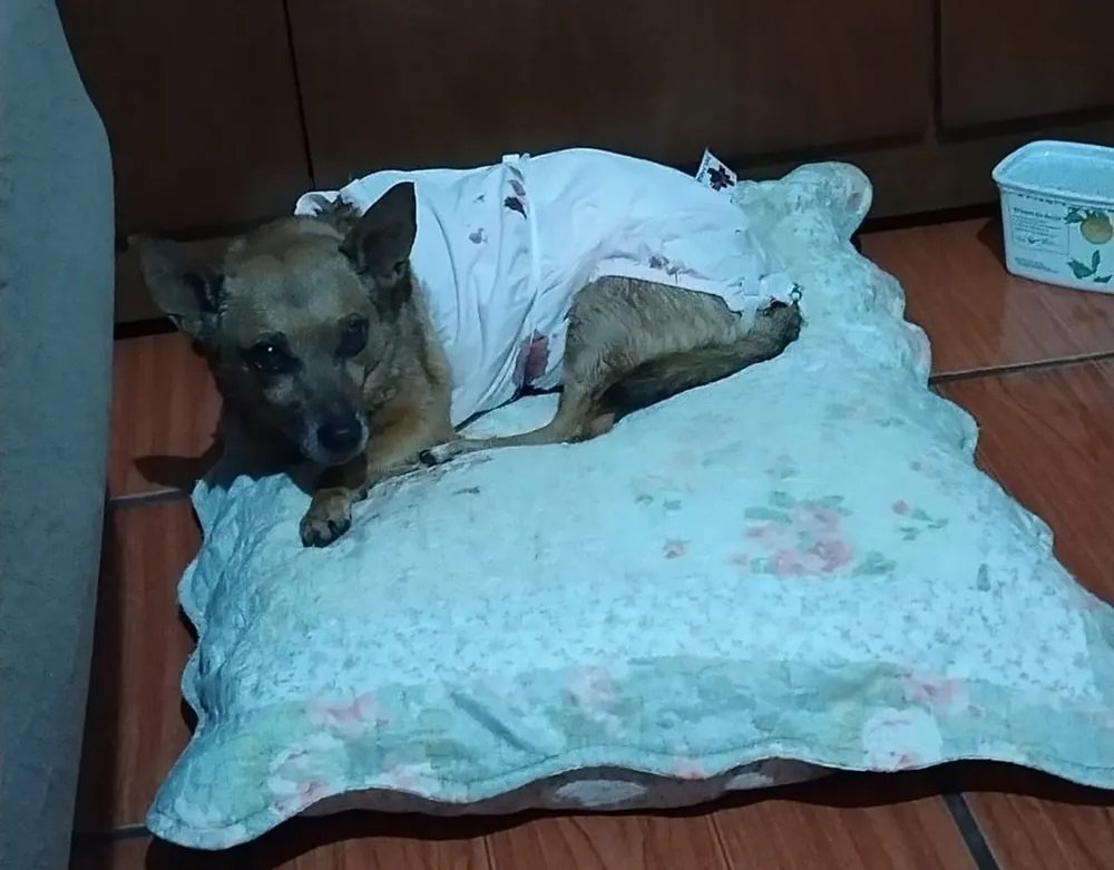 Cachorro precisou passar por cirurgia devido aos ferimentos. Tutora foi mordida no dedo.