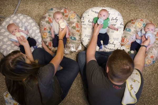 Três meses após a chegada dos bebês, ela e o marido estão se adaptando à vida com os quadrigêmeos, mais o primeiro filho do casal, Ryan, de 3 anos.