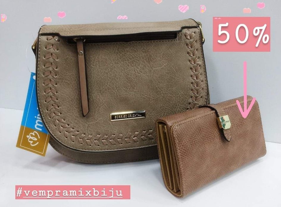 - Compre uma bolsa e ganhe 50% de desconto na carteira