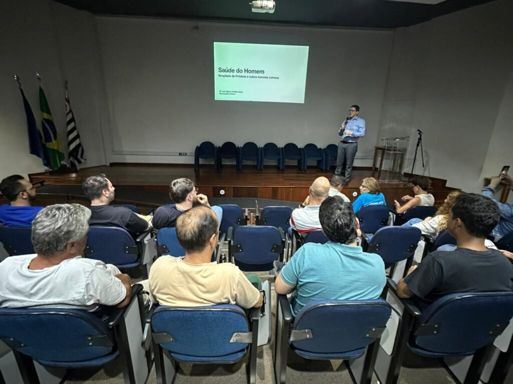 O auditório do Paço Municipal de São Carlos recebeu, na sexta-feira (14/11), uma palestra alusiva ao Novembro Azul, campanha dedicada à conscientização sobre a saúde do homem e, em especial, à prevenção do câncer de próstata. O encontro contou com a participação do médico oncologista Luiz Gazzi, do Ambulatório Oncológico Municipal, que destacou a relevância da detecção precoce da doença e a necessidade de quebrar preconceitos ainda existentes em torno do tema.