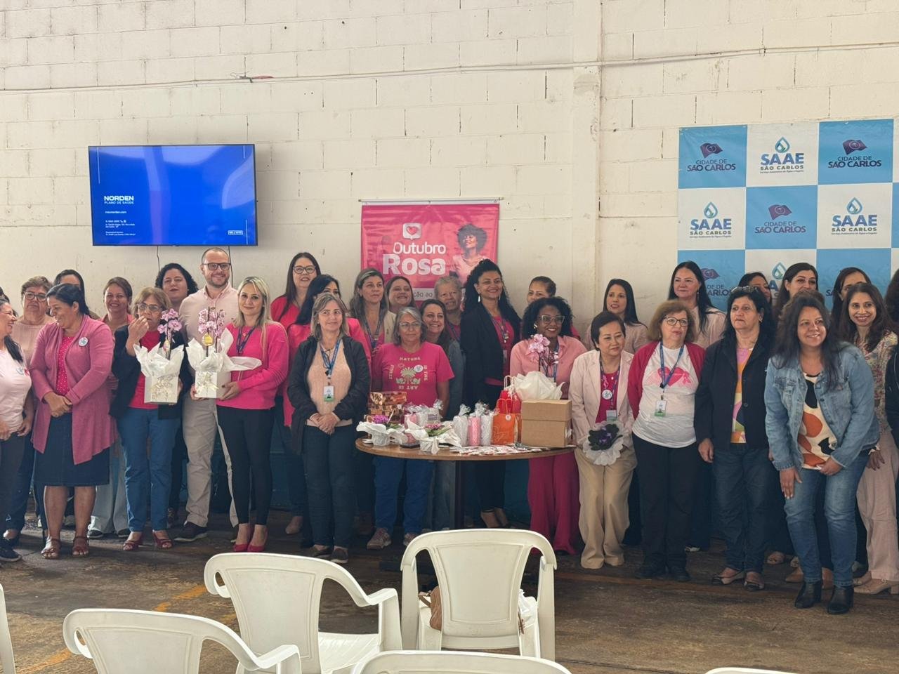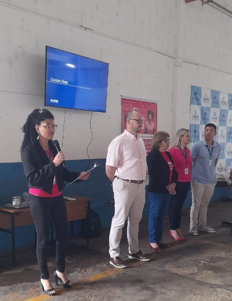 Segundo o Ministério da Saúde, o câncer de mama representa cerca de 28% dos casos novos de câncer em mulheres no Brasil. A doença também pode acometer homens, embora de forma rara, correspondendo a menos de 1% do total. Para fortalecer a prevenção e o cuidado com a saúde entre as colaboradoras e colaboradores, o Serviço Autônomo de Água e Esgoto de São Carlos (SAAE) realizou, nesta sexta-feira, 10 de outubro, a palestra “Outubro Rosa – cuidar de si é um ato de amor”, ministrada pela enfermeira Karina Guarnieri.
