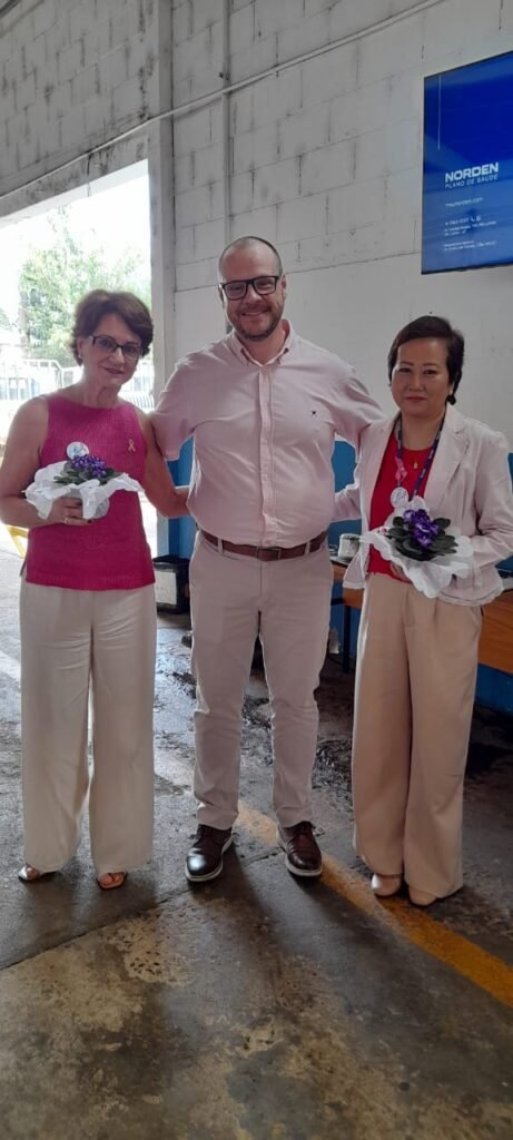 ENCONTRO DE APRENDIZADO E EMOÇÃO – A palestra foi ministrada pela enfermeira Karina Guarnieri, profissional com ampla experiência em cuidados clínicos e gestão em saúde. Atualmente, ela atua no Hospital Norden e também tem vivência em saúde ocupacional. Além de compartilhar conhecimentos técnicos sobre prevenção, diagnóstico precoce e tratamento, Karina emocionou o público ao dividir sua própria trajetória de superação. “Eu sei que não é fácil. Também já fui paciente oncológica e superei um tumor na cabeça. No começo, não quis contar para a minha família, achava que não tinha o direito de preocupá-los. Mas o apoio psicológico e o apoio familiar são essenciais. Todos nós precisamos disso, então não hesitem em procurar e pedir ajuda.”
