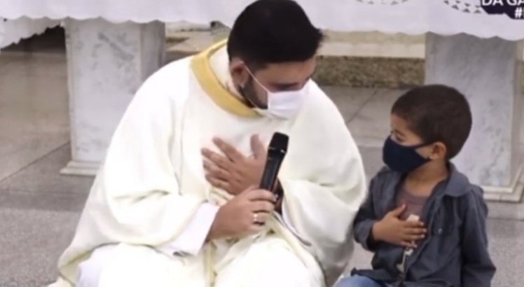 Durante a conversa, o menino contou que seu padrinho tinha sido diagnosticado com Covid-19 e acabou sendo internado. A celebração da missa era transmitida ao vivo nas redes sociais.