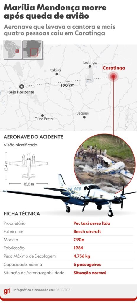 “Com imenso pesar, confirmamos a morte da cantora Marília Mendonça, seu produtor Henrique Ribeiro, seu tio e assessor Abicieli Silveira Dias Filho, do piloto e copiloto do avião, os quais iremos preservar os nomes neste momento. O avião decolou de Goiânia com destino a Caratinga (MG), onde Marília teria uma apresentação esta noite”, informou a assessoria da cantora.