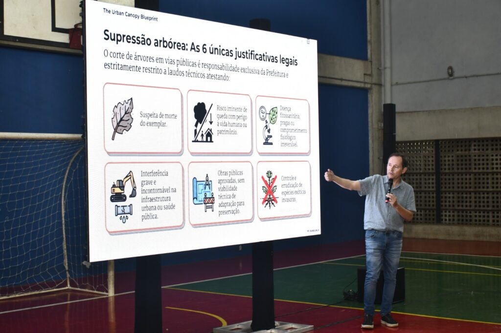 O secretário municipal de Clima e Meio Ambiente, Júnior Zanquim, também reforçou a relevância da participação popular no processo e destacou os benefícios da arborização para o município.