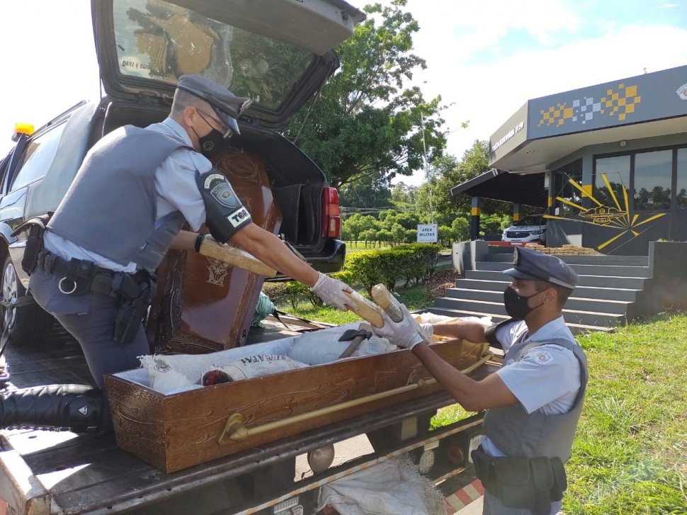Policiais do 2º Batalhão da Polícia Militar Rodoviária ficaram surpresos, na manhã deste domingo (12), quando resolveram fiscalizar um caixão dentro de um carro funerário que era transportado em cima de um guincho, durante uma blitz no km 445 da rodovia Raposo Tavares, em Assis (SP). No interior da urna funerária não havia nenhum corpo, mas maconha. A quantidade não foi divulgada.