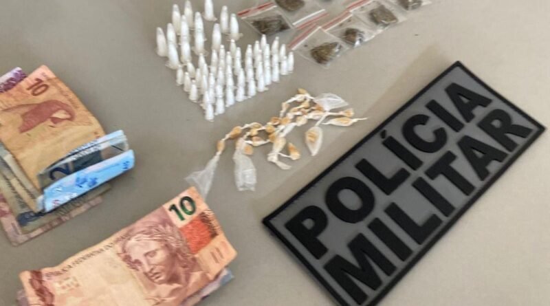 Os agentes procederam com a abordagem e, durante a revista, encontraram com o suspeito um eppendorf contendo cocaína e a quantia de R$ 18,15 em dinheiro. Em uma busca minuciosa pelas proximidades, localizaram dentro de um cano 59 eppendorfs de cocaína, 11 porções de maconha, 26 pedras de crack e mais R$ 40,00 em notas diversas.