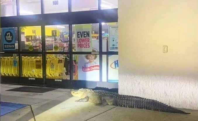 Um jacaré paciente foi fotografado enquanto “esperava” uma loja de conveniência abrir. O animal foi visto no meio da madrugada na porta do estabelecimento por policiais da Luisiana, nos Estados Unidos.