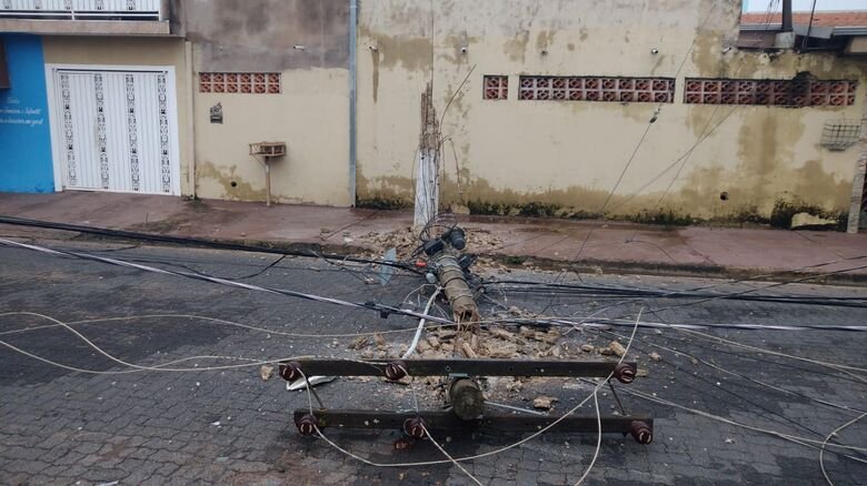 Moradores da rua Araraquara, no Jardim Cruzado, em Ibaté, levaram um grande susto na madrugada deste sábado (21). Um poste de energia caiu sobre via durante uma forte chuva.