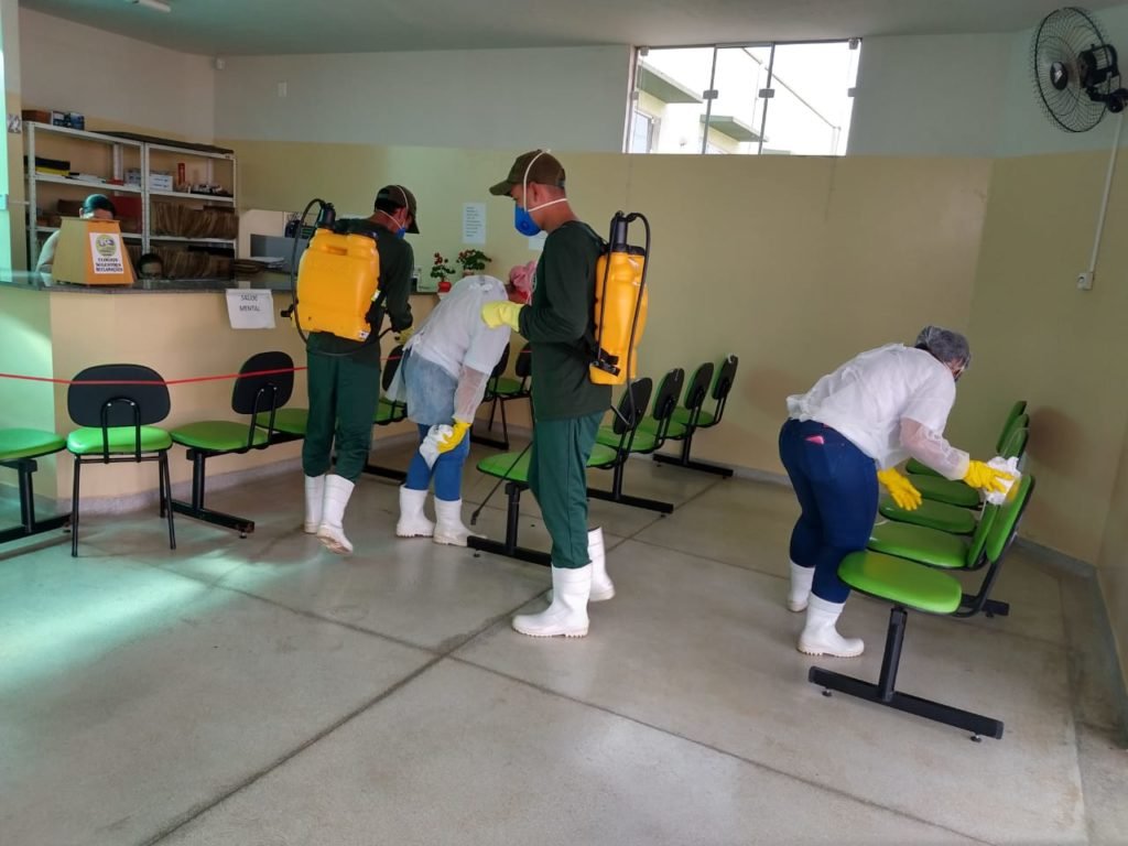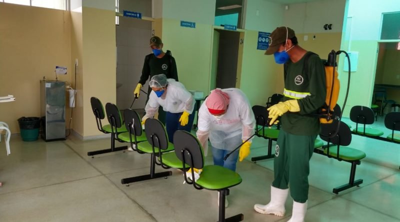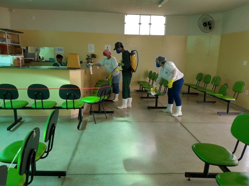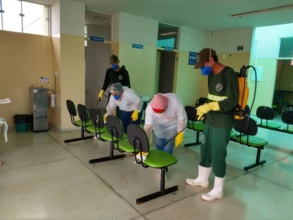 com cloro, em todas as entradas de unidades de saúde e do velório