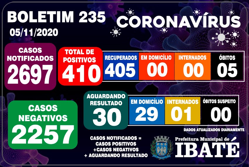 COVID-19: IBATÉ NOVAMENTE NÃO TEM CASOS ATIVOS
