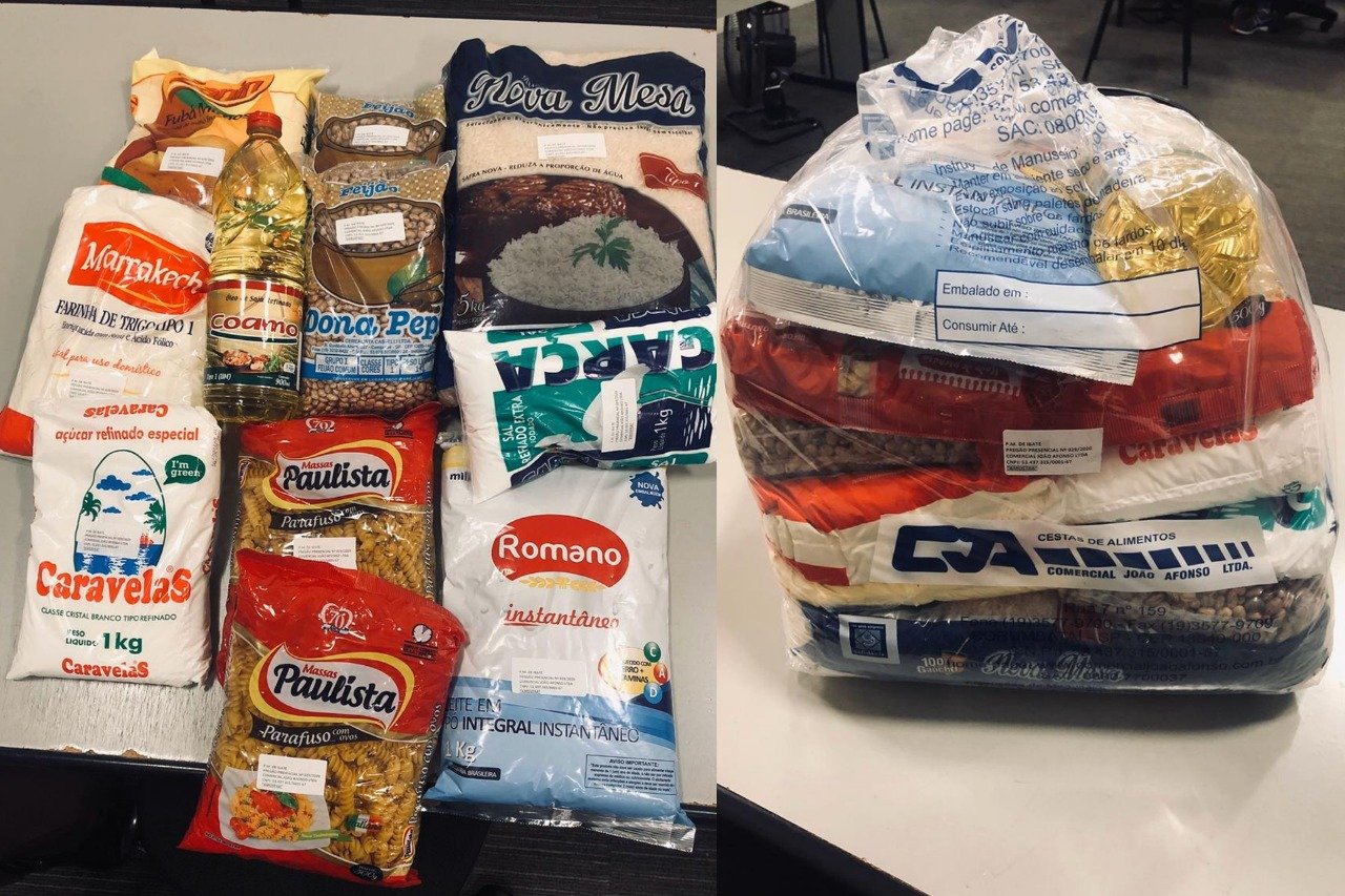 Os kits são compostos por arroz, feijão, farinha de trigo, fubá, açúcar,