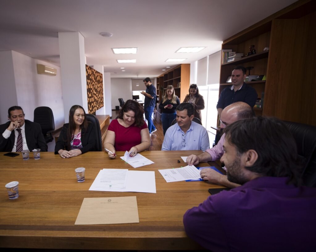 Também participaram da assinatura o secretário Leonardo Lázaro e o diretor Agnaldo Spaziani Junior da Secretaria de Gestão da Cidade e Infraestrutura e o advogado da Associação de Agricultura Familiar Capão das Antas, Waldemir Soares.