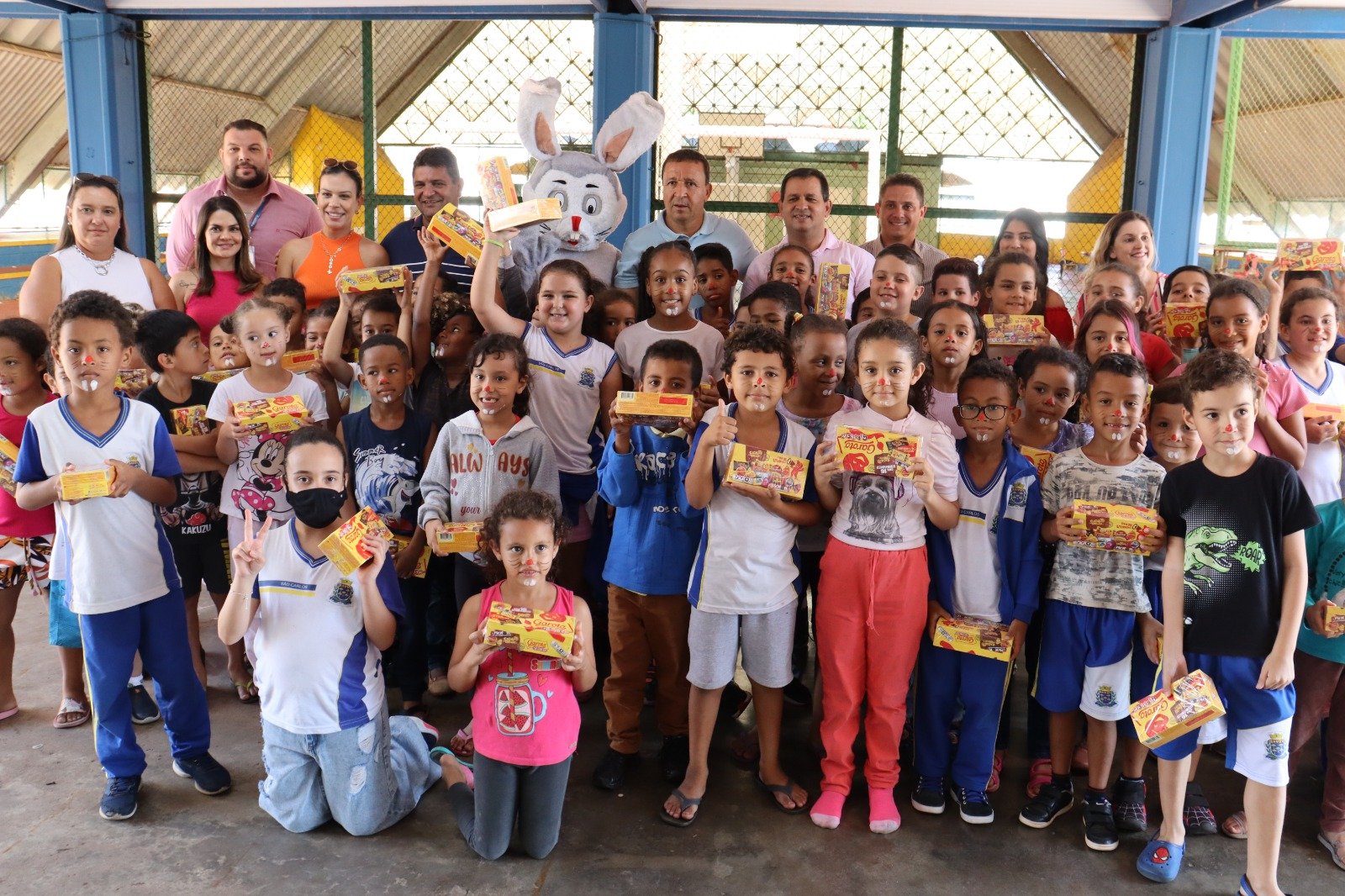 No ato de entrega das caixas de chocolate ocorrido na Escola Municipal de Educação Básica (EMEB) Prof. Afonso Fioca Vitali, o CAIC, no bairro Cidade Aracy, onde estiveram os secretários de Educação, Agricultura e Abastecimento e o vice-prefeito, também participou o vereador Dé Alvim.