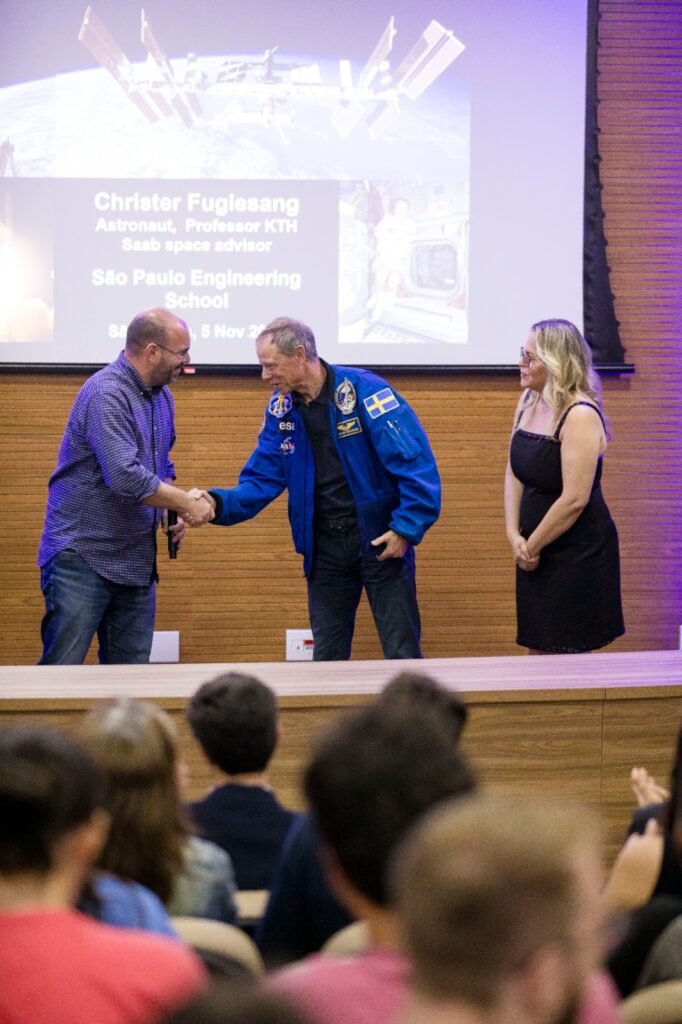 “Foi uma oportunidade e um grande privilégio recebermos o Dr. Fuglesang em nossa Escola. Ao falar de sua experiência como astronauta, ele está não somente disseminando conhecimento, mas também inspirando gerações de estudantes e cientistas”, afirmou o diretor da EESC, Fernando Martini Catalano.
