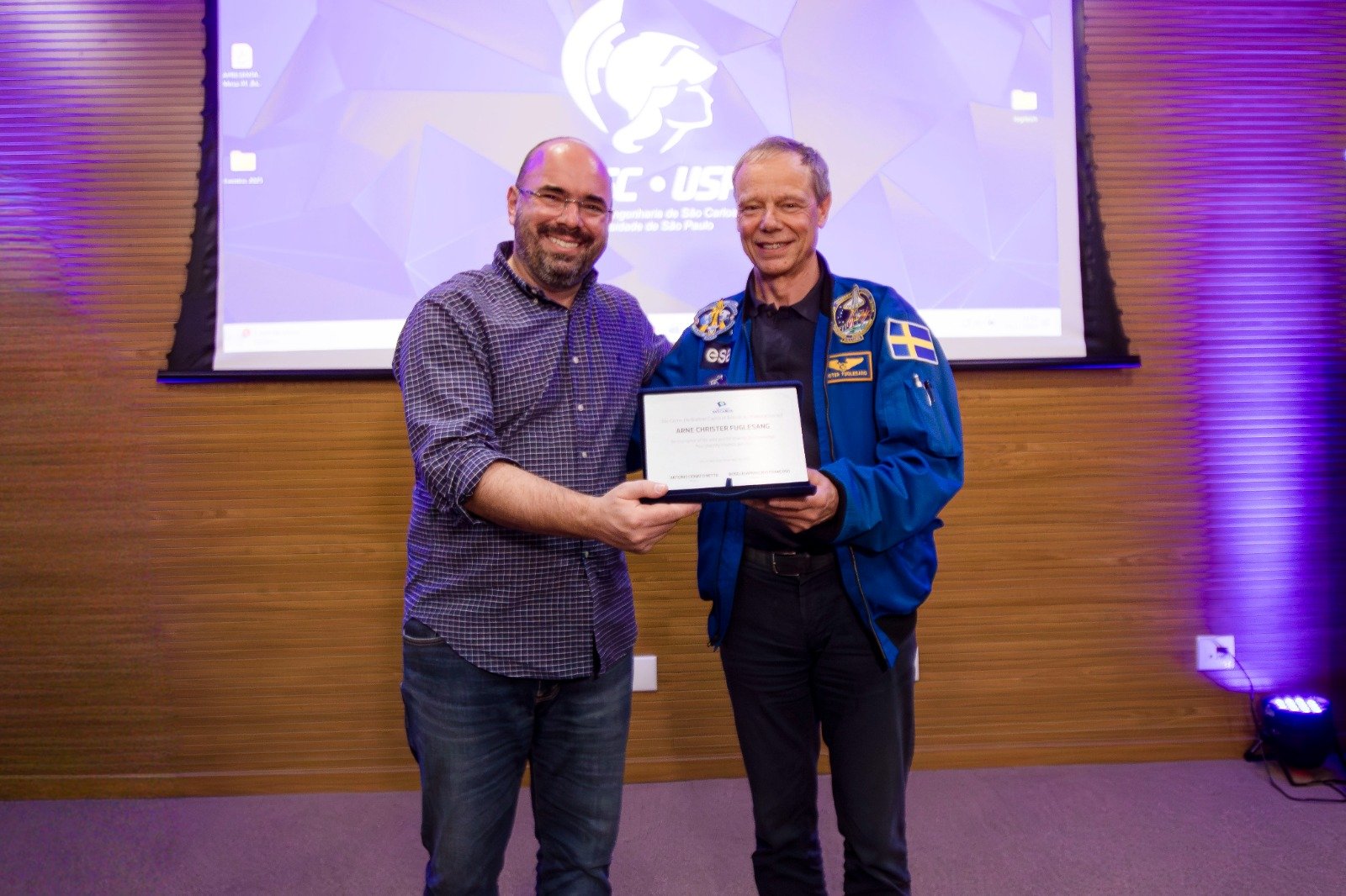 “Foi uma oportunidade e um grande privilégio recebermos o Dr. Fuglesang em nossa Escola. Ao falar de sua experiência como astronauta, ele está não somente disseminando conhecimento, mas também inspirando gerações de estudantes e cientistas”, afirmou o diretor da EESC, Fernando Martini Catalano.