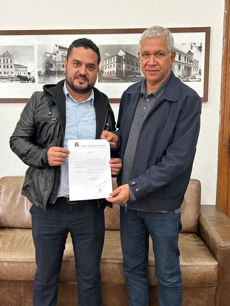 Nesta quinta-feira (3), o presidente da Câmara Municipal de São Carlos, vereador Lucão Fernandes (PP), deu posse a Moisés Lazarini, do PL, como vereador na Câmara Municipal. Moisés assume após a extinção do mandato do vereador Leandro Augusto do Amaral, conhecido como Leandro Guerreiro (PL), em decorrência de condenação criminal com trânsito em julgado.