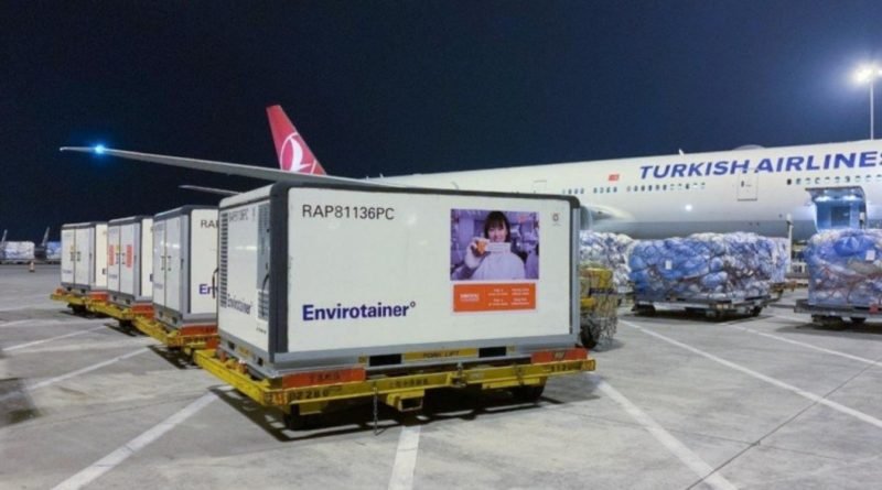 O avião, da empresa Turkish Airlines, transportou 120 mil doses da vacinas trazidas para o país.