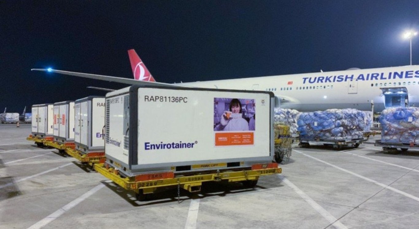 O avião, da empresa Turkish Airlines, transportou 120 mil doses da vacinas trazidas para o país.