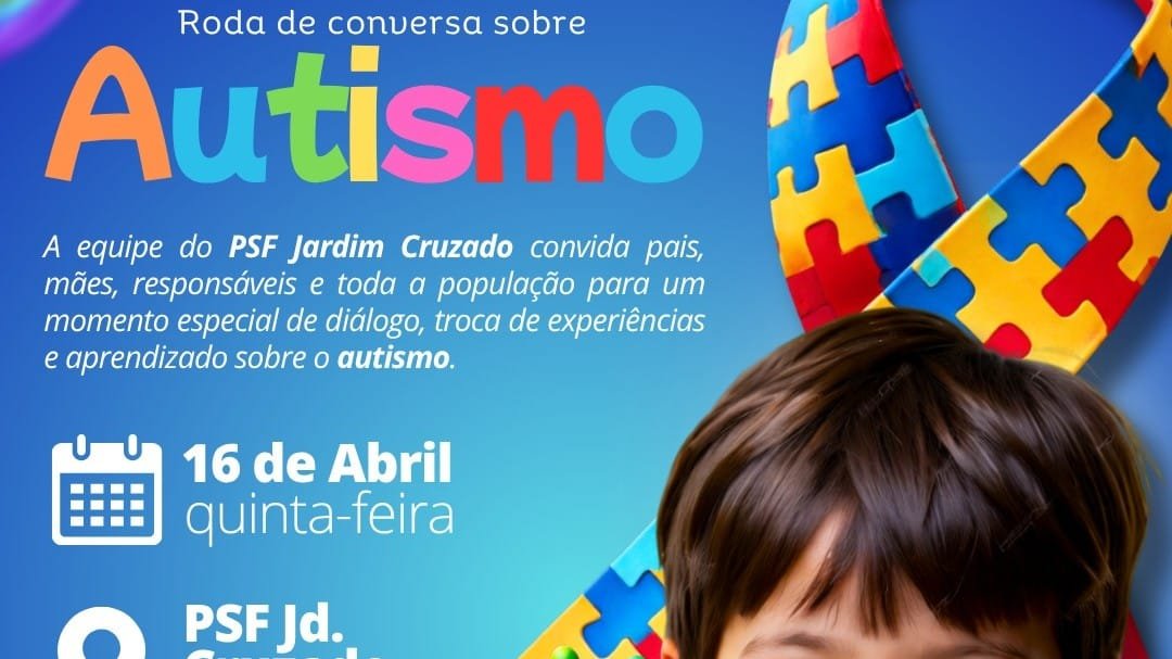 A Prefeitura de Ibaté, por meio da Secretaria Municipal de Saúde, realizará, nesta quinta-feira, dia 16 de abril, uma roda de conversa promovida pela equipe do PSF Jardim Cruzado, voltada à conscientização sobre o Transtorno do Espectro Autista (TEA).