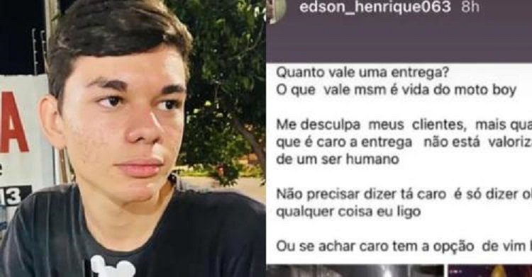 “Quanto vale uma entrega? O que vale mesmo é a vida do motoboy. Me desculpa meus clientes, mas quando fala que é caro a entrega não está valorizando a vida de um ser humano. Não precisa dizer que tá caro é só dizer ok obrigada, qualquer coisa eu ligo. Ou se achar caro tem a opção de vir buscar”, escreveu Edson Henrique da Silva Siqueira, nas redes sociais.