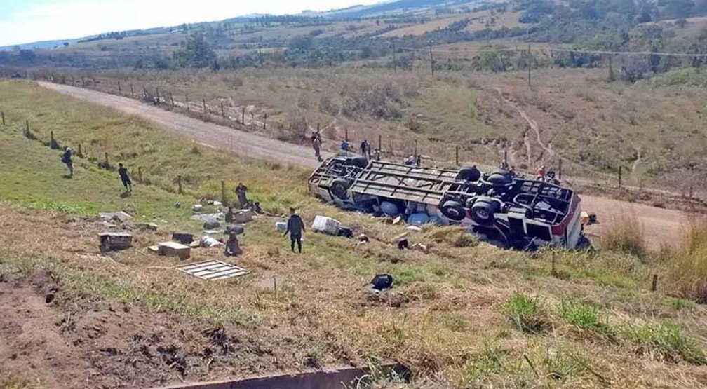 Por motivos ainda desconhecidos, o ônibus saiu da rodovia para o canteiro lateral e capotou na ribanceira, que tem cerca de 20 metros em relação ao nível da pista.