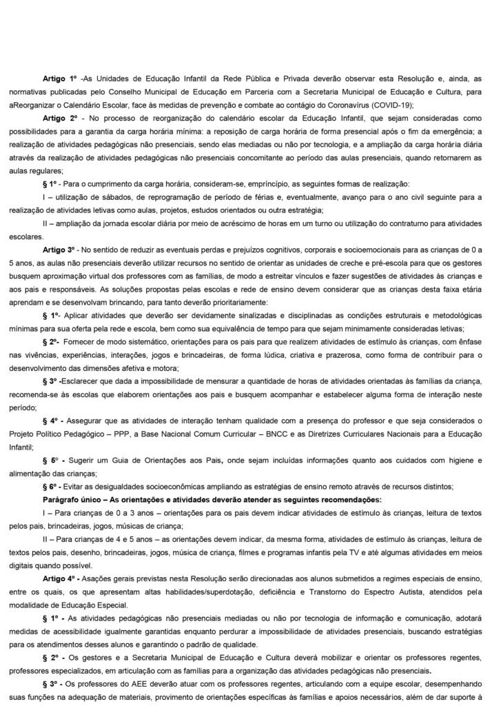 A Secretaria Municipal da Educação editou a Resolução SEMEC nº 003, que