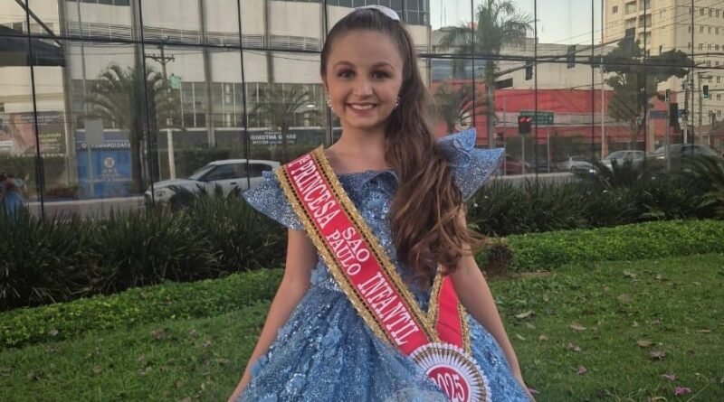 A são-carlense Marcela Baena, de 9 anos, foi eleita 1ª Princesa no concurso Miss São Paulo Infantojuvenil 2025, realizado na tarde deste domingo (18), no Teatro Municipal Santos Dumont, em São Caetano do Sul (SP).