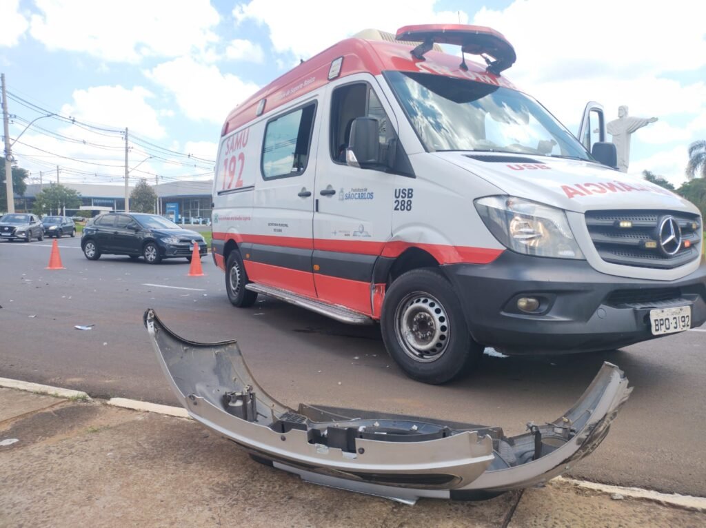 SÃO CARLOS-Carro colide em Ambulância do SAMU que transportava vítima de AVC