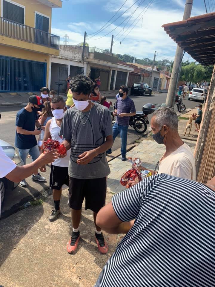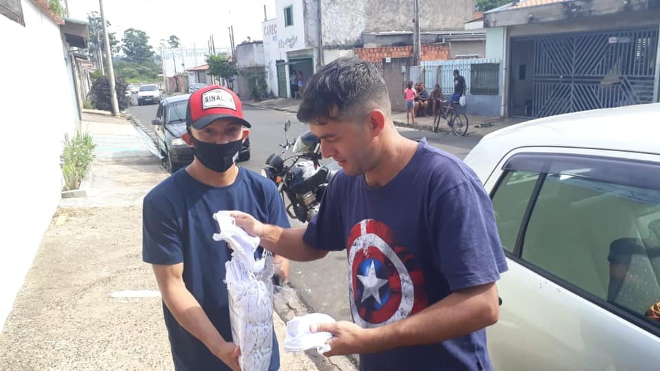 De acordo com Leandro, a entrega foi feita respeitando os protocolos sanitários para evitar a disseminação do Coronavírus, com marcação na calçada, sendo espaço de 1,5 mt entre as pessoas.