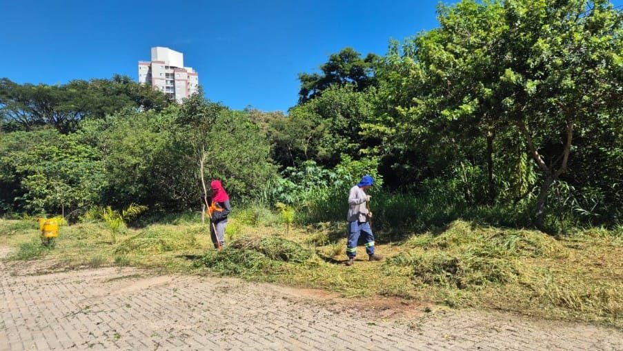 O programa também avançou com serviços de roçada em diferentes regiões da cidade. As equipes atuaram na Avenida Bruno Ruggiero (Santa Felícia), na Rua Larga (Vila Prado), na Praça da ACISC (Cardinalli), na Pista de Atletismo (Distrito de Água Vermelha) e em áreas da zona leste.