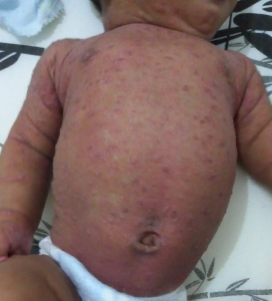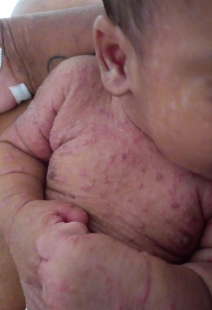 Um bebê de apenas dois meses de Praia Grande, no litoral de São Paulo, precisou ficar internado por uma infecção derivada da escabiose, conhecida como sarna humana. Em entrevista neste domingo (21), a mãe dele, Stefanny Bomfim Albuquerque, de 25 anos, relatou que a família toda está com a doença, e, apesar do filho ter recebido alta, ainda está sofrendo de dor.